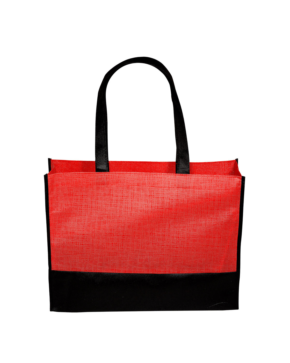 Description: A durable and eco-friendly tote bag made from tonal 80 GSM non-woven polypropylene with black solid color accents. Features an open main compartment for easy access and non-woven handles for comfort and portability.