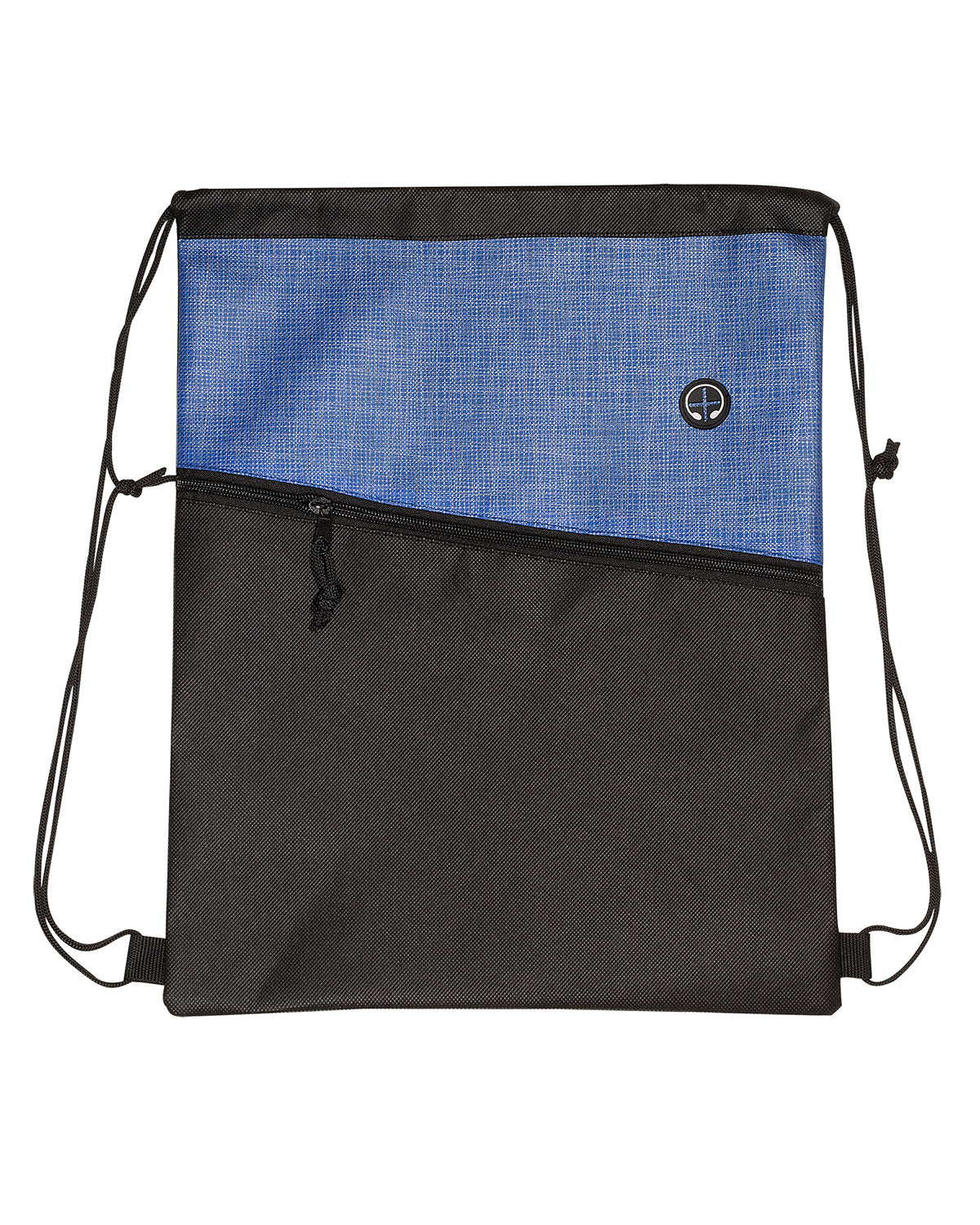 Description: A practical cinch bag made from durable 80 GSM non-woven polypropylene. This bag features a front zipper pocket, an open main compartment with a top drawcord closure, and a rubber headphone port for added convenience on the go.