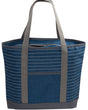 Description: A stylish and lightweight tote bag featuring a heathered tonal base with gray stripes and accents. Perfect for casual outings or daily errands.