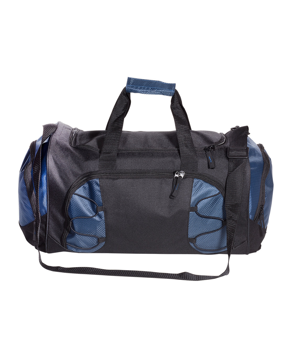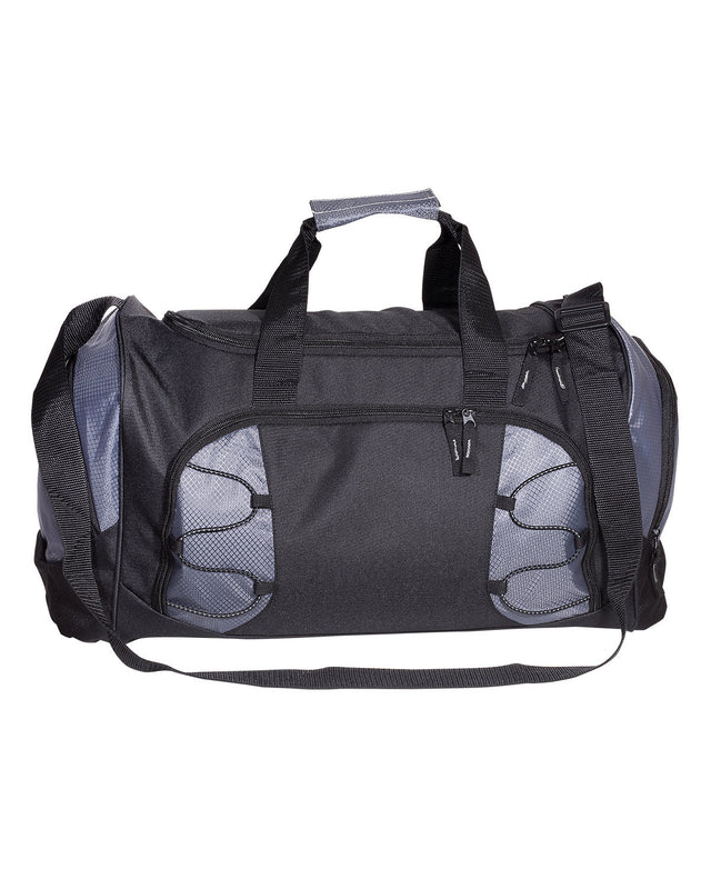 Description: This sporty duffel bag is made from 600D polyester with PVC backing and 210D polyester lining, with color accent panels in 420D polyester. It features an adjustable web shoulder strap, padded carry handles, and multiple zippered compartments, including a side-access shoe compartment, for convenient storage and organization.