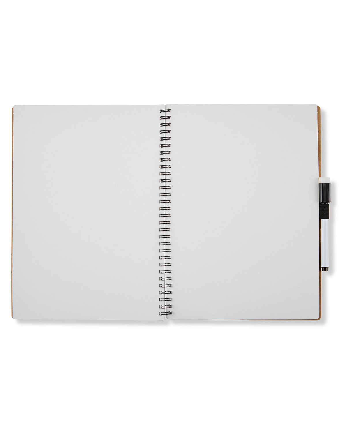 Description: This portable, reusable dry erase spiral-bound notebook helps reduce paper use and is perfect for brainstorming sessions, coaching teams, or jotting down quick notes. It includes 8 whiteboard surface panels and a dry erase marker for easy writing and erasing.