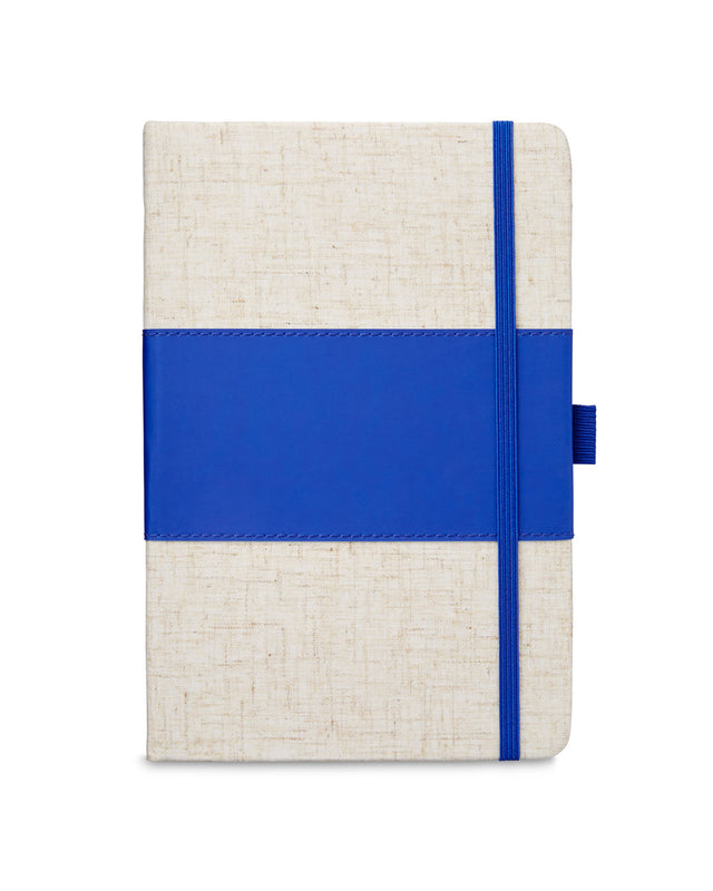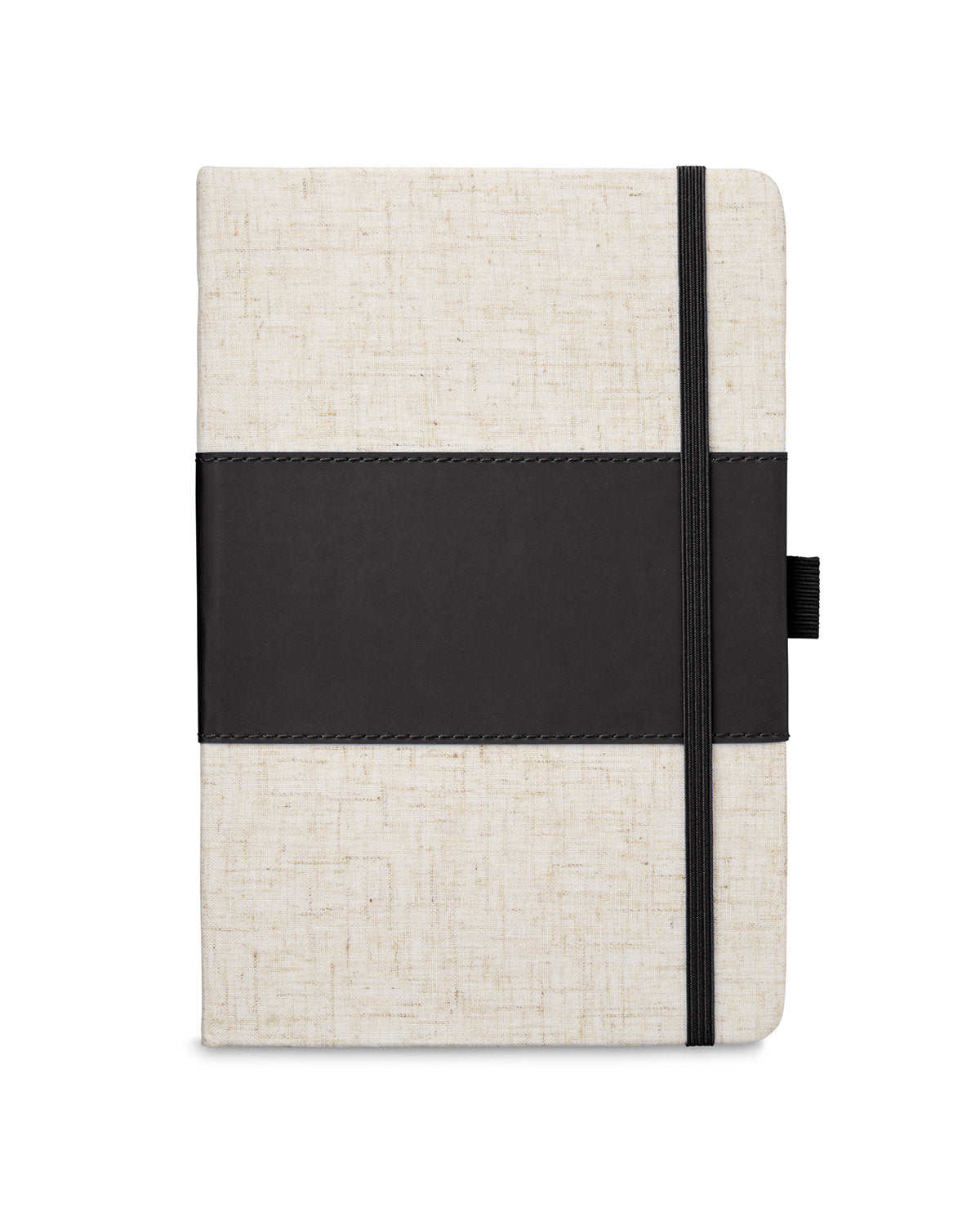 Description: This elegant notebook features a heathered fabric cover with a Thermo PU band for added durability and style. It includes approximately 80 lined sheets of 70g beige paper and has an elastic pen loop (pen sold separately) and a matching bookmark with a cover PU stripe for easy navigation.