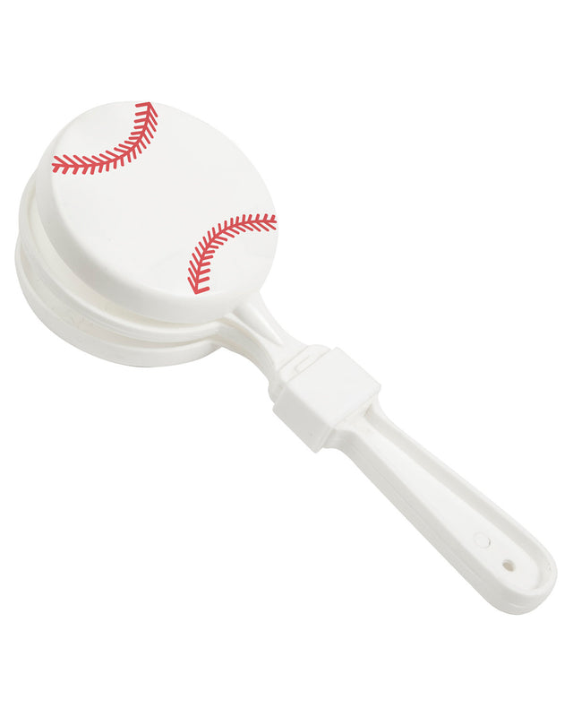 Description: Make some noise and celebrate in style with these baseball-shaped polypropylene clappers. Perfect for sales seminars, company parties, outings, and sporting events, they feature sport-themed stock art and are designed to shake for maximum fun!