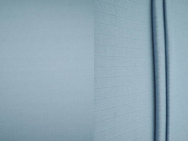 1 Yard Cotton Style Pointelle Rib Knit Jacquard Fabric Soft Rayon Poly Blend 68/70 Inch - BLUE LT. is backordered and will ship as soon as it is back in stock.