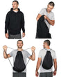 - Patented 2-in-1 hoodie converts into functional drawcord backpack in seconds