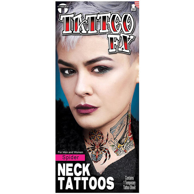 Tinsley Transfers Spider Neck Tattoos for Halloween Parties Themed Events and Fun Costume Alternatives