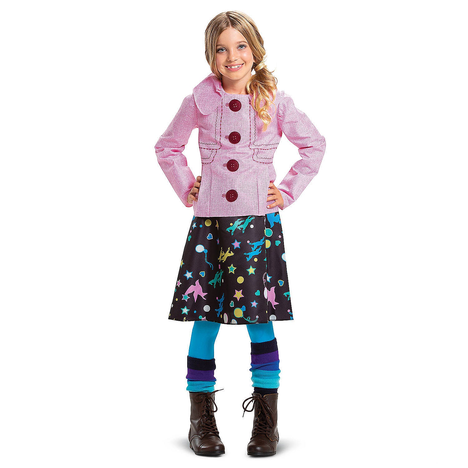 Let your child step into the magical world of Harry Potter with our Kids Deluxe Luna Lovegood Costume. This enchanting outfit includes a stylish top with printed details, a fun patterned skirt, footless tights, and colorful knit leg warmers, making it perfect for Halloween, birthday celebrations, or any magical adventure.