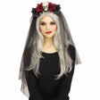 Horror Skull and Roses Bridal Veil Headband for Halloween Parties and Spooky Themed Weddings