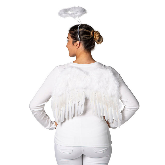 Premium 20 x 16 White Wings with Halo Costume Accessory for Halloween Parties Dress Up and Theatrical Performances