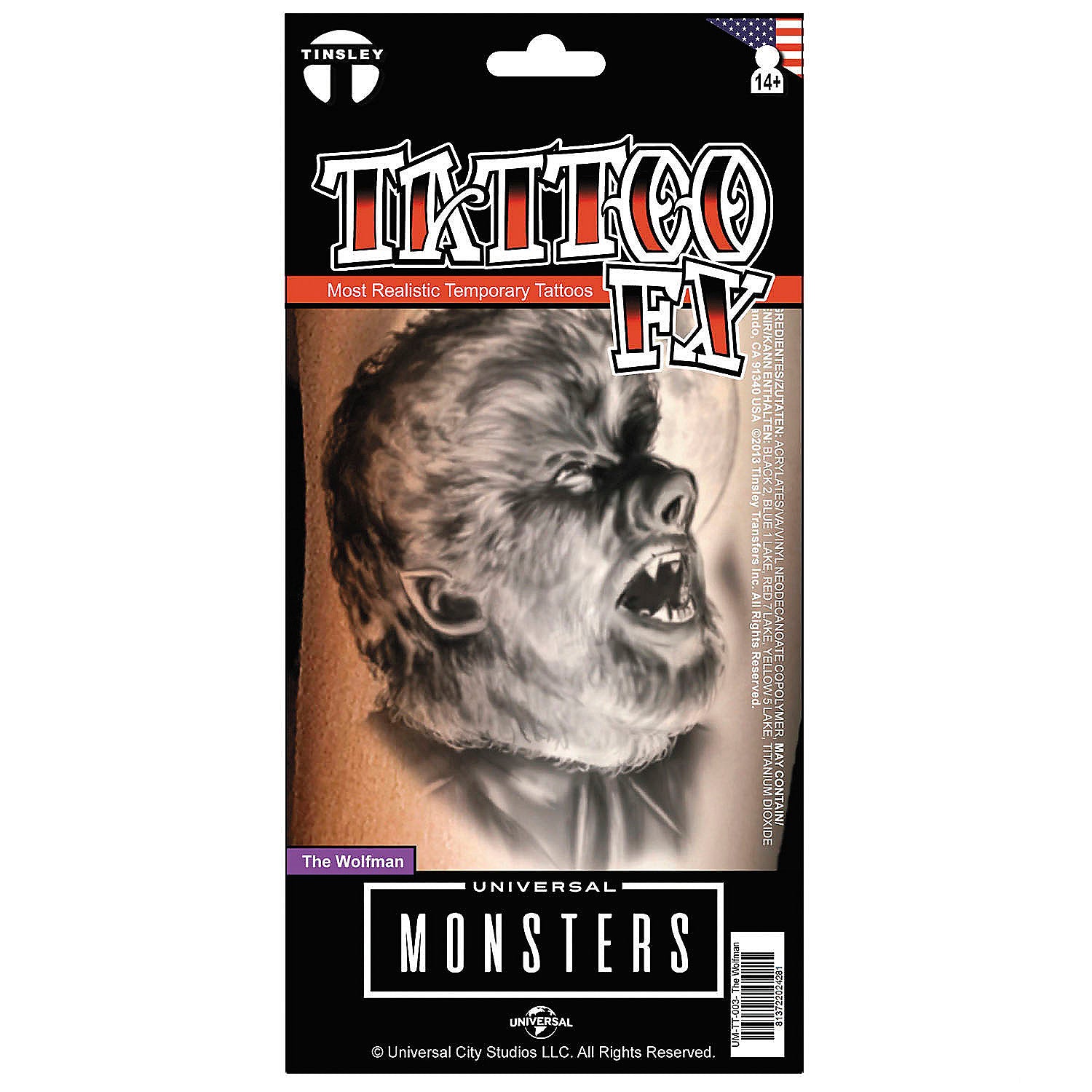 Universal Monsters The Wolfman Temporary Tattoo for Halloween Accessories Costume and Themed Events
