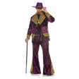 Get ready to make a statement with our Adults Big Player Velvet Fur-Trimmed Costume. Crafted from rich, embossed purple velvet and featuring faux leopard trim, this outfit ensures you stand out at any costume event. The ensemble comes complete with matching bell-bottom pants and a stylish wide-brimmed hat.