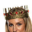 Elegant Adults Gold Plastic Crown with Red Gemstones for Halloween Costume Parties and Themed Celebrations