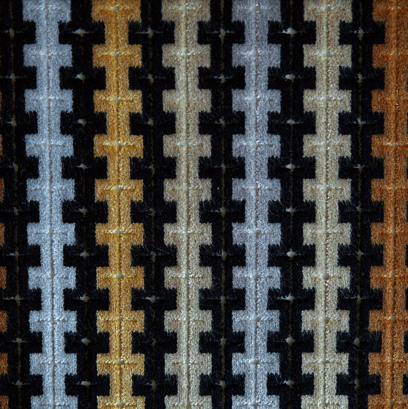 Aiden Geo is an elegant cut velvet fabric made from 40% polyester and 60% viscose, ideal for upholstery, drapery, and pillows. With a vertical repeat of 0.75" and a horizontal repeat of 4.50", it boasts 50,000 double rubs of durability. Flame-retardant and perfect for both residential and commercial use.