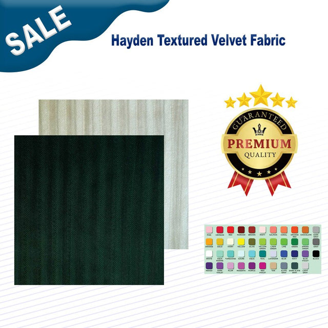 Hayden Velvet is a luxurious 100% polyester fabric designed for upholstery, drapery, and pillows. Featuring a subtle 0.75" horizontal repeat, this fabric adds a refined texture to any space. With a durability rating of 40,000 double rubs and compliance with CAL TB 117-2013 and UFAC Class 1/NFPA 260 fire standards, it offers both style and resilience.