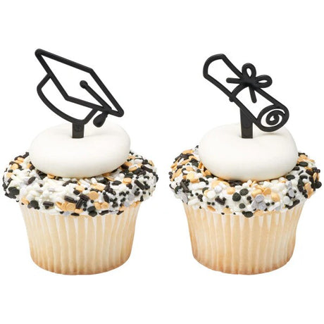 Graduation Icon and cap Assortment Cupcake Cake Pics - set of 12