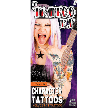Tinsley Transfers Rock Star Temporary Tattoos for Halloween Costume Parties and Creative Body Art