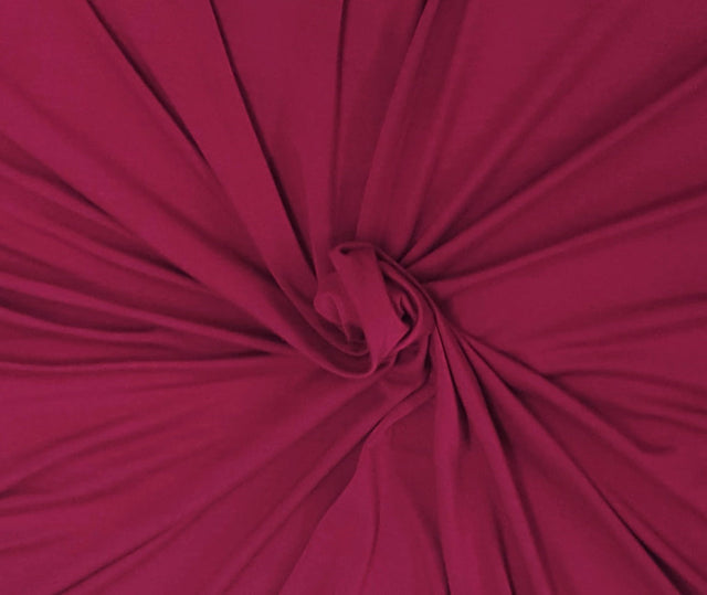 Make a bold fashion statement with this Magenta Rayon Spandex Jersey Fabric. Known for its ultra soft feel and excellent stretch, this fabric offers a flattering drape and breathable comfortideal for sewing figure hugging dresses, stylish tops, leggings, or activewear. The vibrant magenta color adds a pop of energy to any wardrobe piece or DIY fashion project.