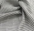 This Gray/Ivory Rayon Dobby Pinstripe fabric is a lightweight woven textile made from 100% rayon with a width of 57/58 inches. It features a subtle pinstripe design and a soft hand finish with a graceful drape, making it ideal for elegant blouses, tailored shirts, and flowing dresses. Suitable for both casual and formal wear, this fabric is a versatile choice for apparel and sewing projects. Sold by the yard in whole-yard cuts.