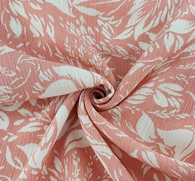 This rayon crinkle fabric is crafted from 100% rayon, featuring a lightweight woven texture with a beautiful pleated crinkle effect. It drapes elegantly, making it perfect for stylish blouses, fashion dresses, and gorgeous skirts that require soft movement. The fabric can be used alone or paired with a liner for added opacity and comfort. Its breathable quality and unique texture make it an excellent choice for fashionable, comfortable apparel.