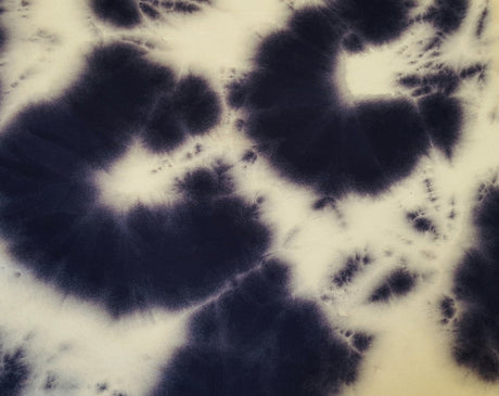 1 Yard Ivory/Navy Rayon Spandex Jersey Fabric Tie Dye Print Soft Stretch Knit for Apparel & Crafts