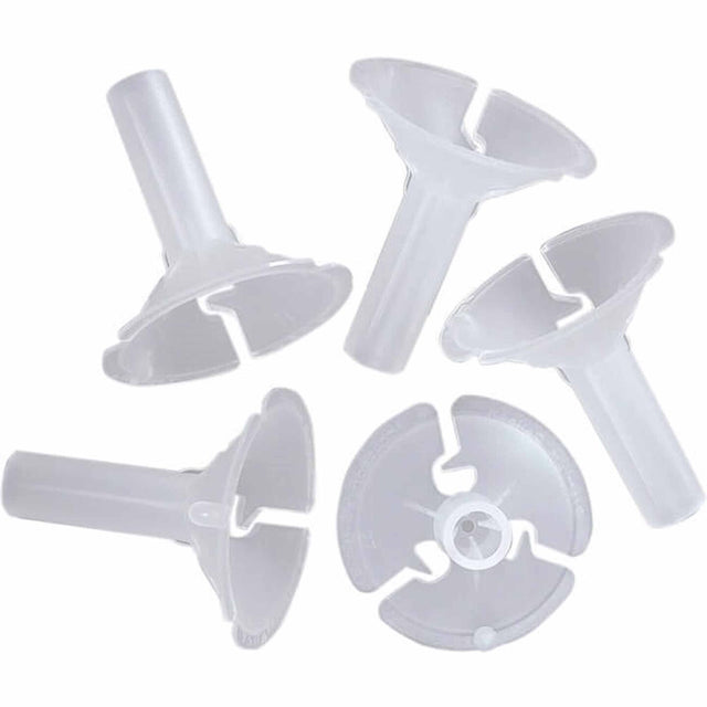 Attaches and props air inflated balloons to sticks. Plastic. 11/2 inch. Polybagged. 100 pieces per unit. Sold by the unit.