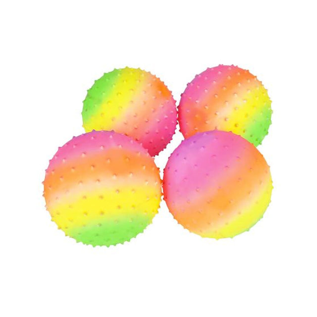 Dive into a world of vibrant fun with our Inflatable Rainbow Knobby Balls by ®! These colorful balls boast a diameter of 6 inches when inflated, perfect for little hands to grasp and play with. Crafted from soft rubber, they ensure a safe and enjoyable experience for kids of all ages. Get ready to bounce, toss, and catch with these delightful balls! Don't forget to have a needle pump handy for quick and easy inflation. Packaged in convenient polybags, each unit contains 10 pieces, ensuring there's plenty of joy to go around. Bring a burst of rainbow excitement to any playtime with ®'s Inflatable Rainbow Knobby Balls!