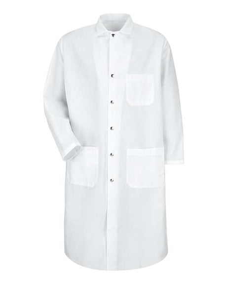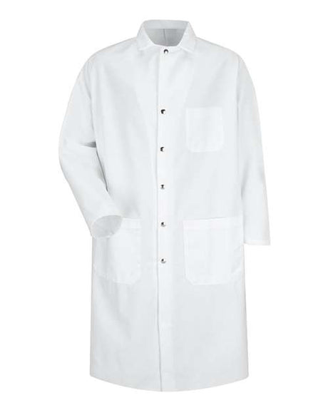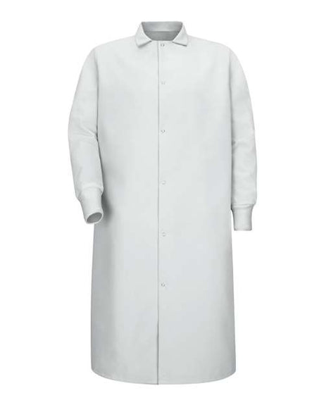 Gripper-Front Pocketless Butcher Coat With Knit Cuffs