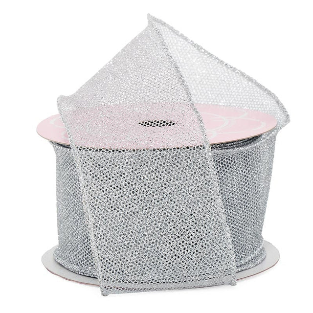 Glitter Fine Mesh Wired Ribbon 2 1/2 '' X 10 yd Silver Color 1 / ROLL