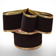 Add a touch of sophistication to your packaging and décor with the Elegance Velvet Flocked Ribbon in Black. This 2-1/2" wide, 10-yard roll features velvet flocking on one side, offering a smooth and rich texture. The flexible wired edges, adorned with an ornate gold border, make it perfect for creating voluminous bows and elegant accents. Whether for retail displays, gift giving, or craft projects, this velvet ribbon exudes formal elegance.