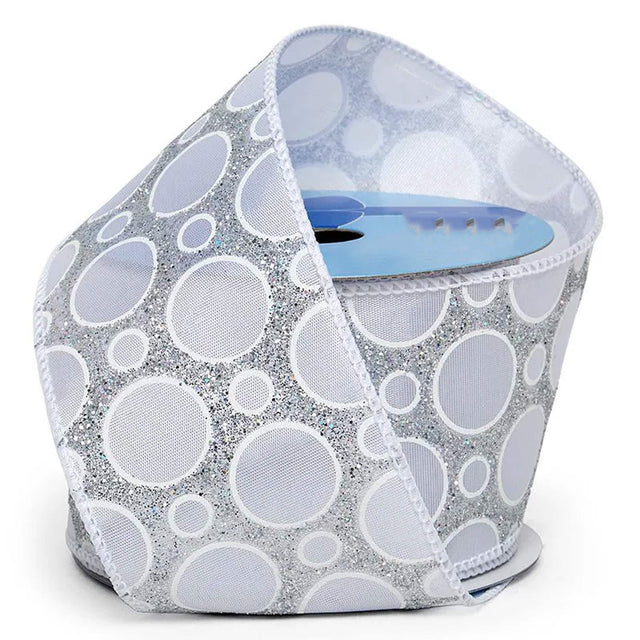 Glitter Bubbles On Satin Wired Ribbon 2 1/2 '' X 10 yd Silver / White Color 1 / roll