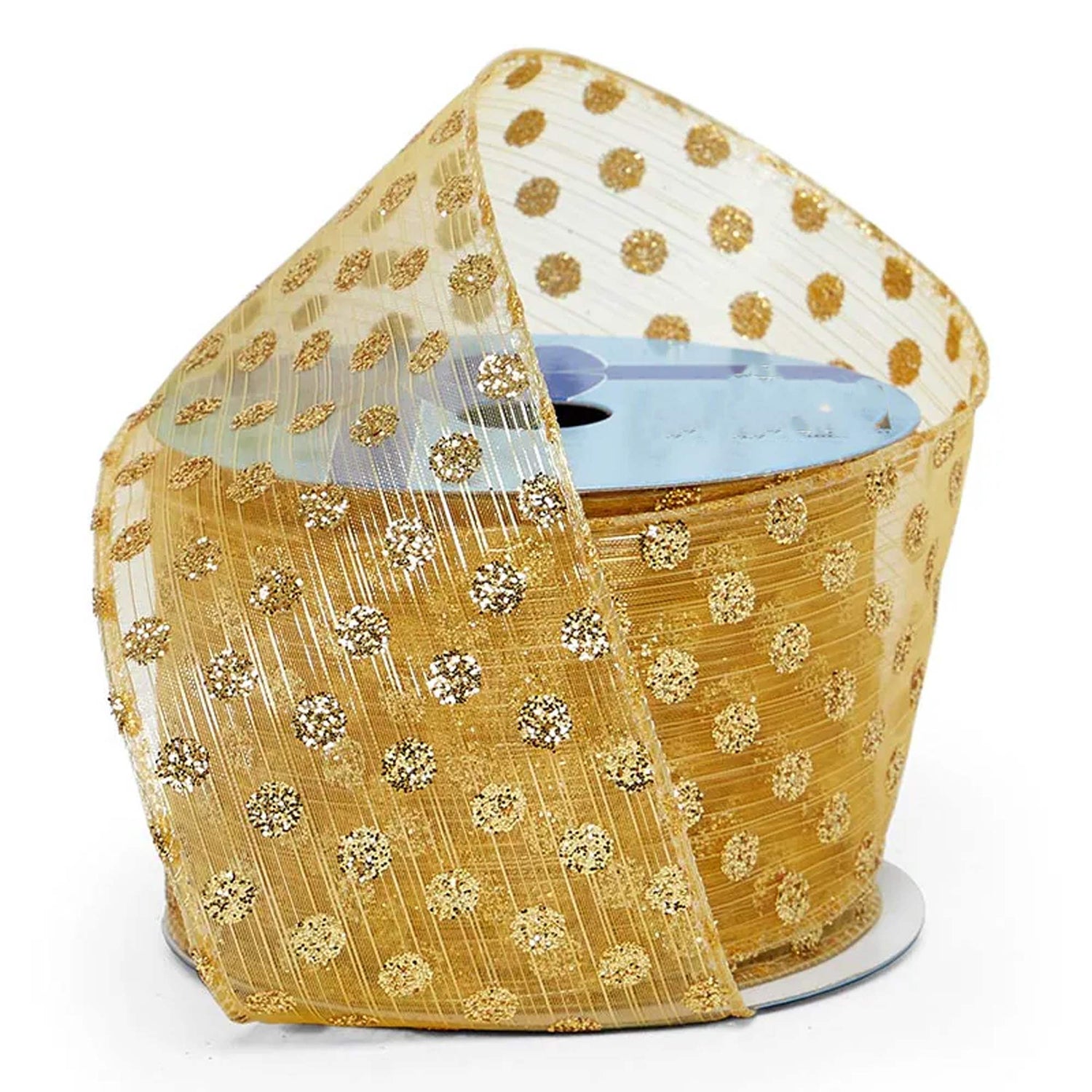 Glitter Dots On Sheer Wired Ribbon 2 1/2 '' X 10 yd Gold w/ Metallic Color 1 / roll