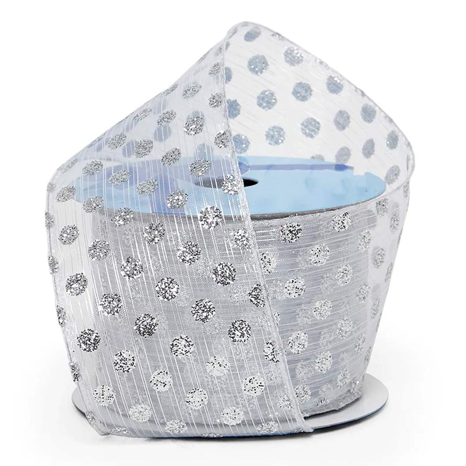 Glitter Dots On Sheer Wired Ribbon 2 1/2 '' X 10 yd Silver W/ Metallic Color 1 / roll