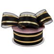 Metallic Edged Satin Center Ribbon in black and gold adds a bold and luxurious touch to any decorative project. Measuring 1 1/2 inches wide and 25 yards long, it features a satin center flanked by sheer woven sides and lightly wired edges for beautifully structured bows.