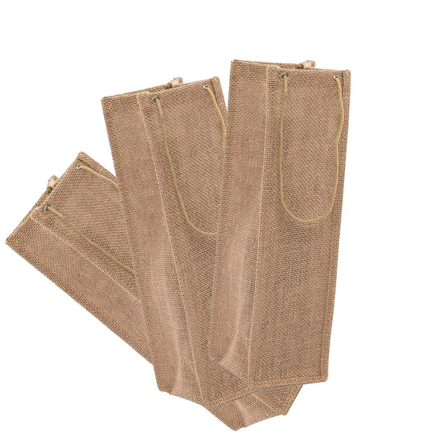 Jute Cord Handle Wine Bags 4 '' X 4 '' X 14 '' Natural