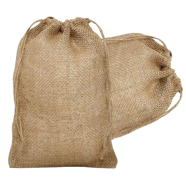 These mini burlap bags offer a rugged, natural aesthetic, making them a unique and eco-friendly option for gift packaging. Each bag features a double-knotted string closure at the top for secure sealing.