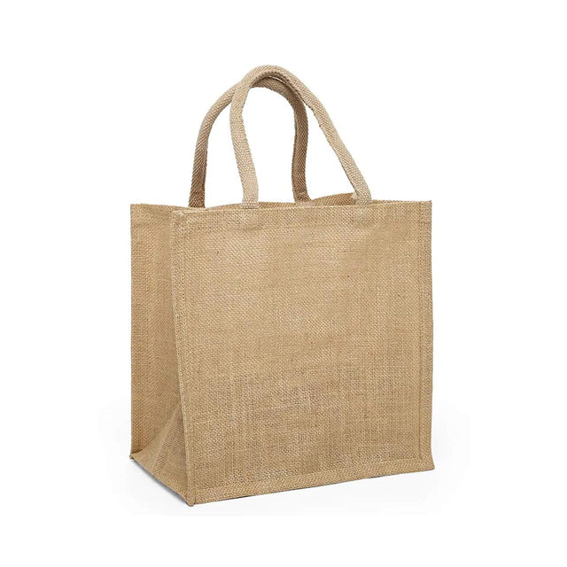 Jute Shopping Bags - Laminated Interior 11 7/8 '' X 7 7/8 '' X 11 7/8 '' Natural