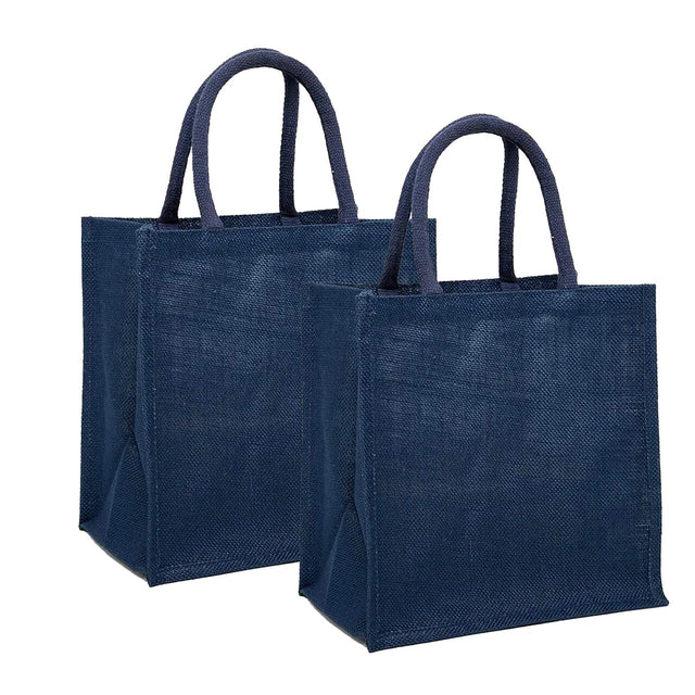 Jute Shopping Bags - Laminated Interior 11 7/8 '' X 7 7/8 '' X 11 7/8 '' Navy