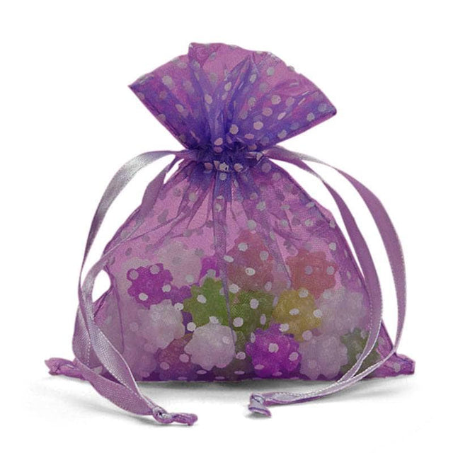 Polka Dot Organza Bags 3 '' x 4 '' Purple Color 30 EACH / PACKAGE - 30 count is backordered and will ship as soon as it is back in stock.