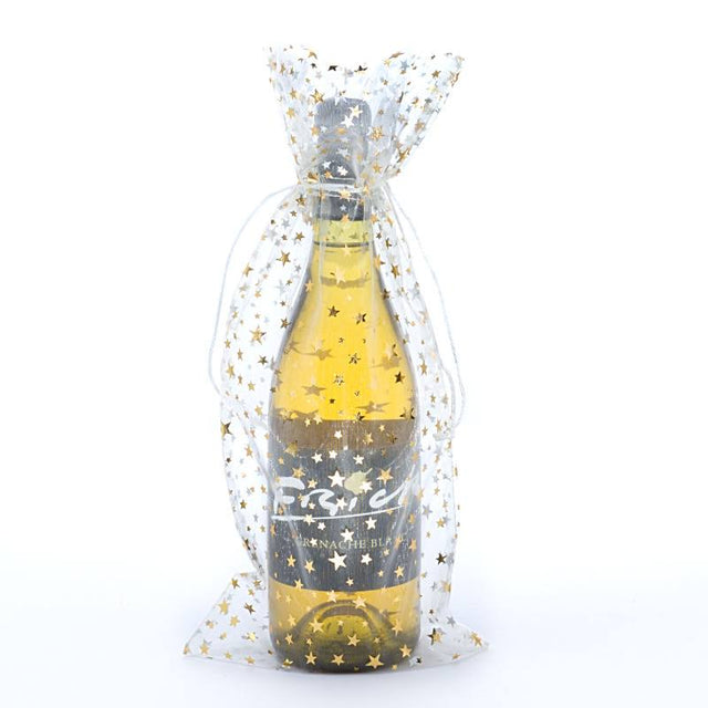Star Print Organza Wine Bags 6 1/2 '' x 15 '' White Color 12 EACH / PACKAGE
