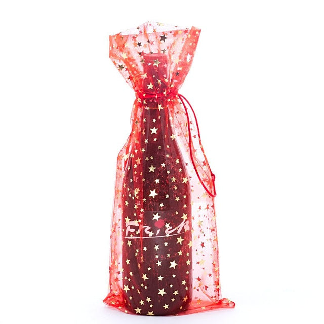 Star Print Organza Wine Bags 6 1/2 '' x 15 '' Red Color 12 EACH / PACKAGE