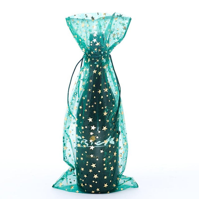 Star Print Organza Wine Bags 6 1/2 '' x 15 '' Hunter Color 12 EACH / PACKAGE