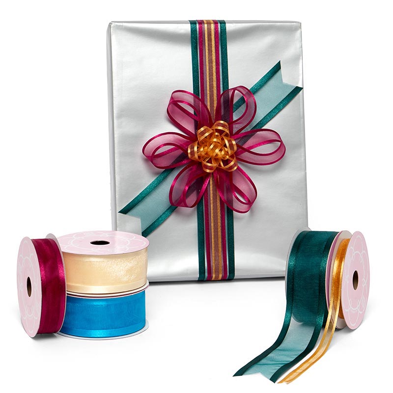 Satin Edged Arabesque Ribbon offers a luxurious embellishment with its sheer center and shiny satin borders. Made of 100% nylon, it's perfect for gift wrapping, décor, and craft projects in a classic arabesque style.