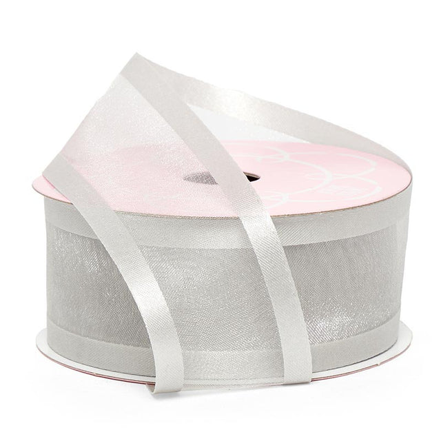 Satin Edged Arabesque Ribbon 3/8 '' X 25 yd Silver Color 1 / roll