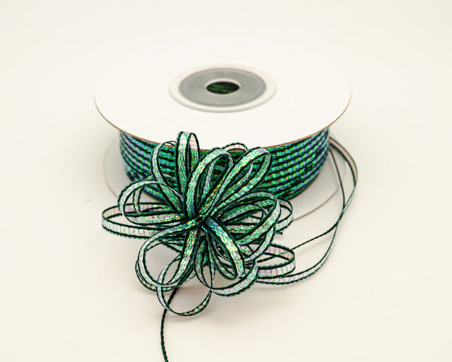 1/8"x50 yards Hunter Green Organza Pull Bows Ribbon with Iridescent Edge