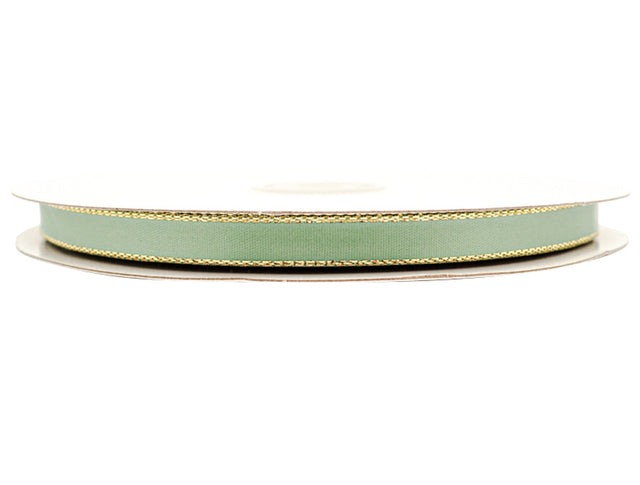 3/8"x50 yard Sage Green Satin Gift Ribbon with Gold Edge
