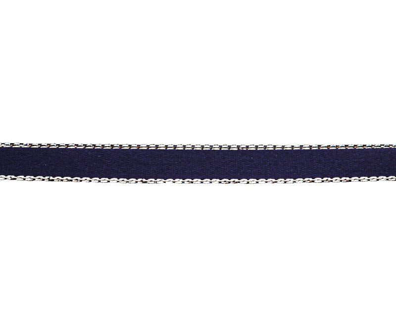 Rich and regal, this navy blue satin ribbon with silver edge adds a refined and contemporary flair to any occasion.