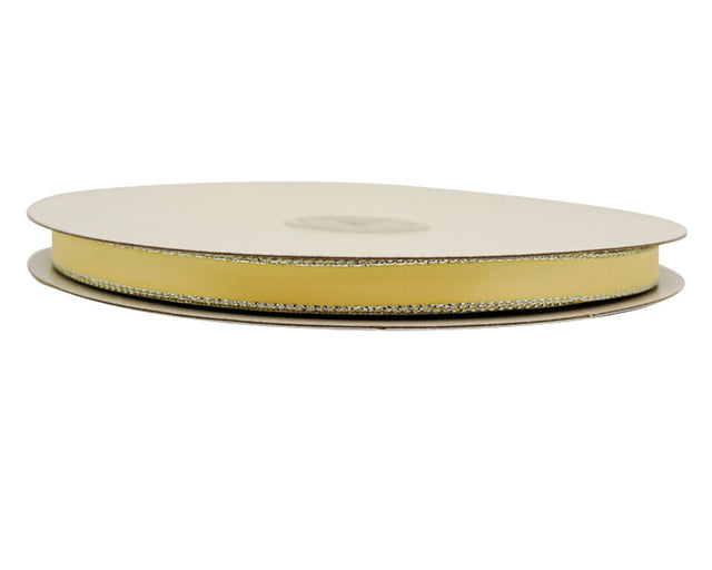 3/8"x50 yard Light Yellow Satin Gift Ribbon with Silver Edge