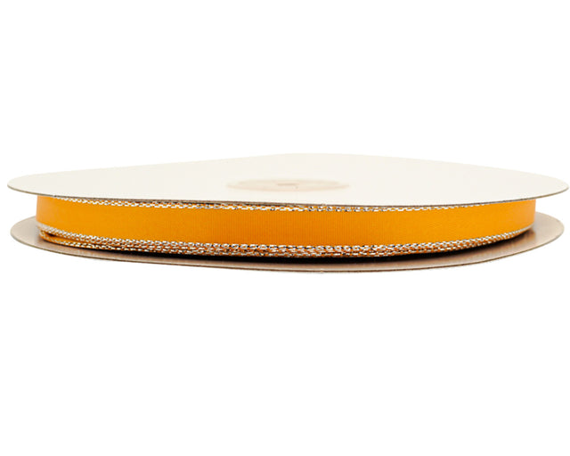 Bold and radiant, this gold yellow satin ribbon with a silver edge adds a vibrant and chic touch to your celebrations.