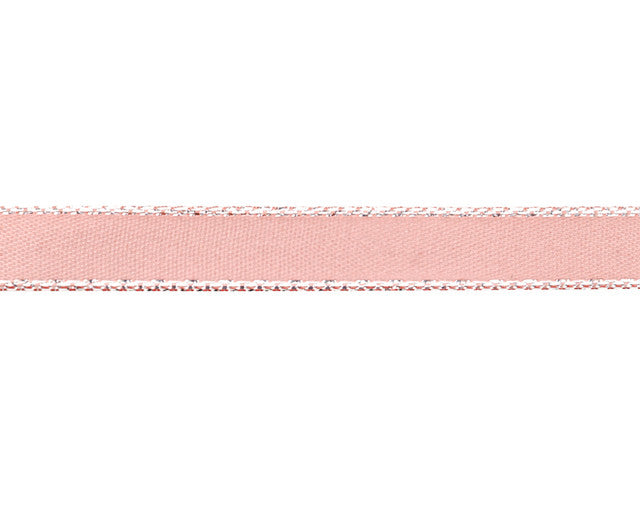 Delicate and graceful, this blush satin ribbon with silver edge adds a subtle and sophisticated touch to your gifts and decorations.