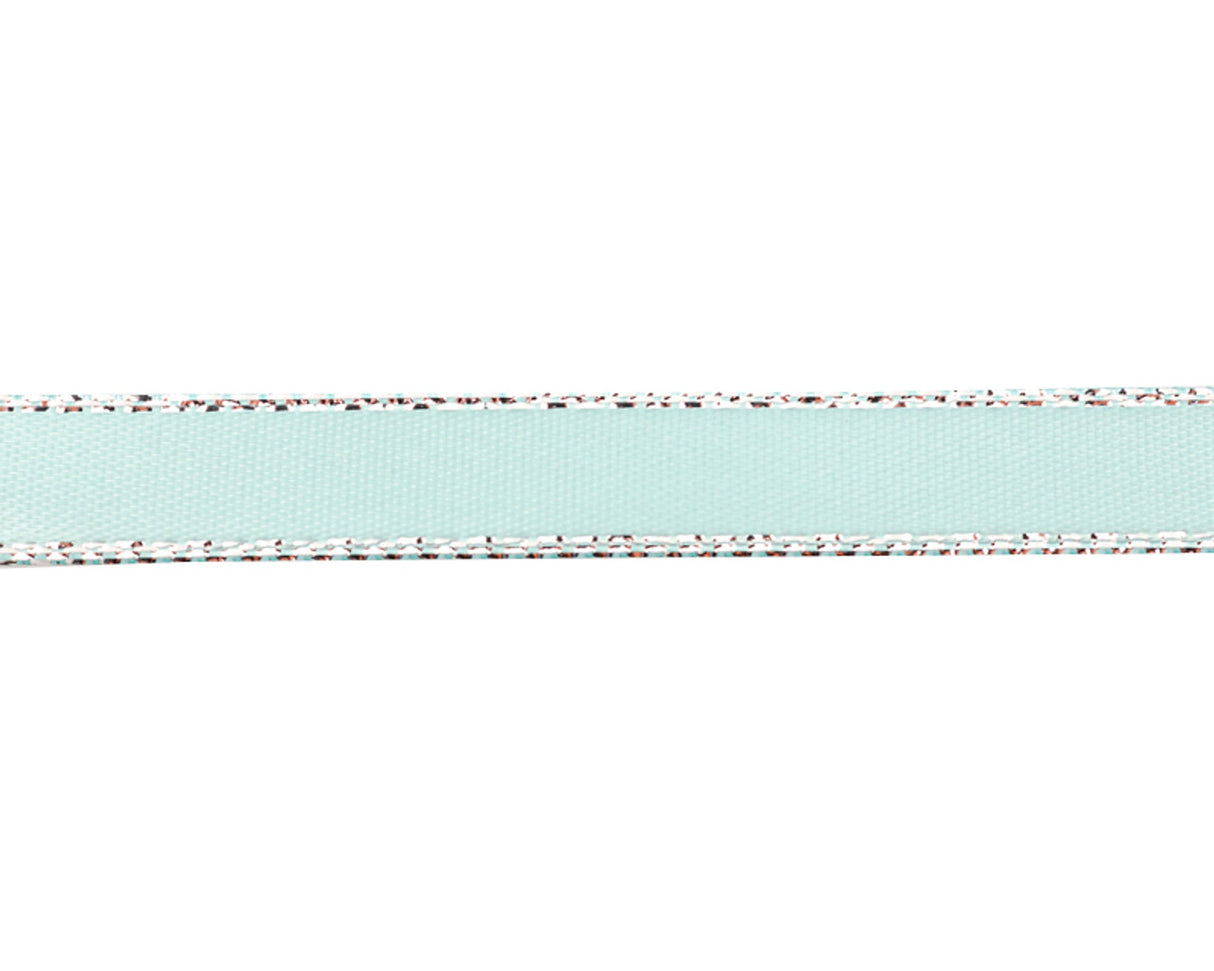 Cool and refreshing, this aqua satin ribbon with silver edge adds a breezy and elegant touch to your gifts and decorations.